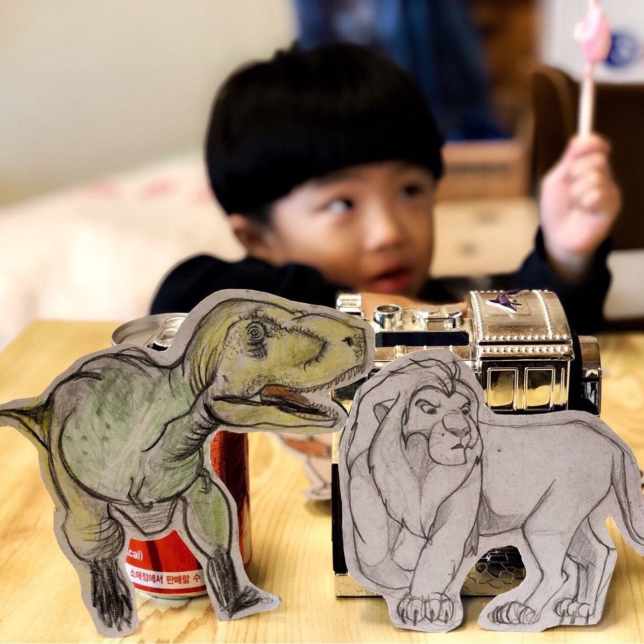 아이들은 커가면서 연령대별로 한참 빠져있는 분야가 있는 것 같습니다. 우리 2호 고객님 기준으로 뽀로로, 타요, 공룡, 소방차, 아이언맨 지금은 스케이트보드에 빠져 계십니다. 공룡은 대부분의 남자아이들이 한 때 빠지는 듯합니다. 2호 고객님께서공룡에 빠져 계시던 그 때에는 하루에 수십 장의 공룡을 그려 드렸습니다. 한글은 몰라도 공룡이름은 줄줄 외우고 다니시던 당시 그중에서도 2호 고객님은 티라노사우루스의 열혈팬이었습니다.