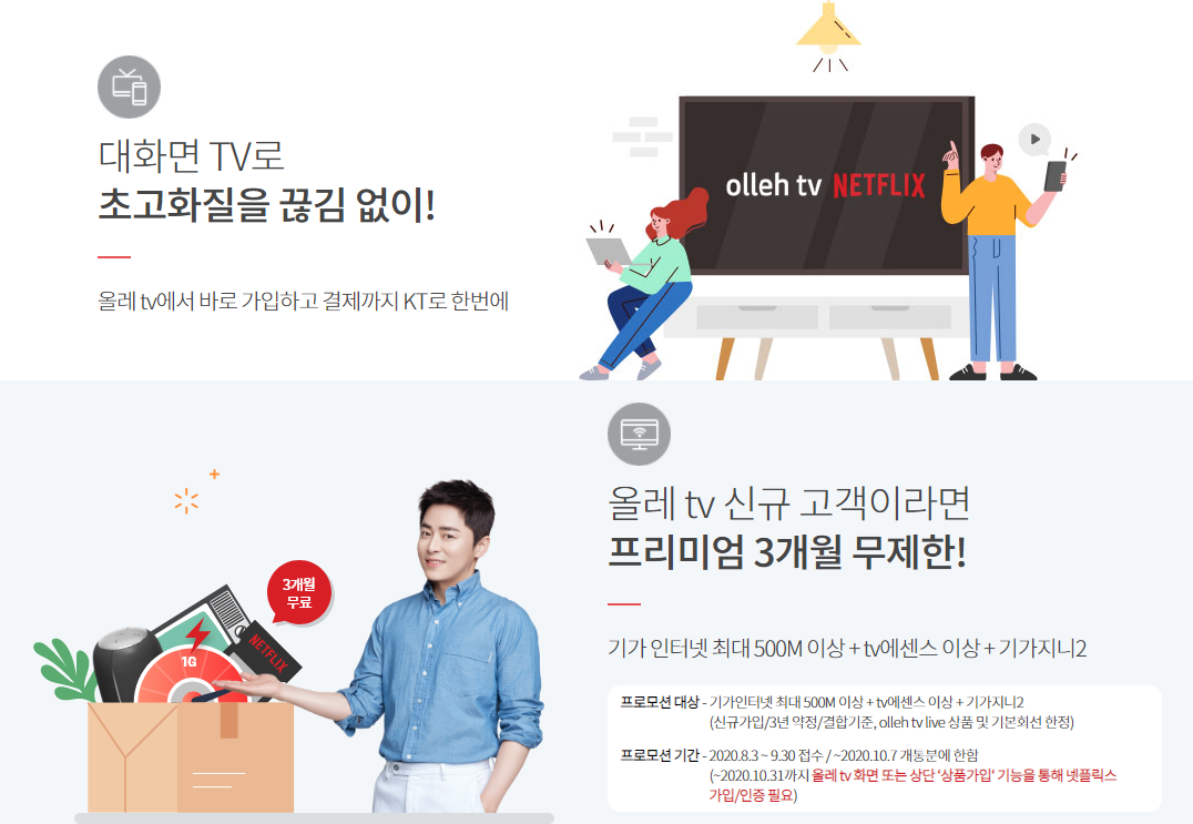 <이미지출처>올레KT 홈페이지 올레티비에서 넷플릭스를 서비스하면서 프로모션들을 진행하고 있으니 올레 KT 홈페이지에 방문하셔서 확인해 보시는 것도 좋을 듯합니다.