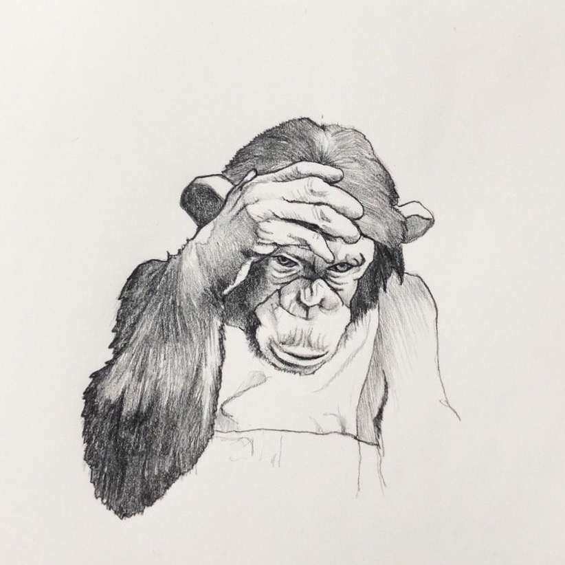 20190213 침팬치 0.5mm B샤프 동물스케치는 털이라는 놈 때문에 인물스케치보다 단순 반복 작업이 많다는 게 흠이다.
