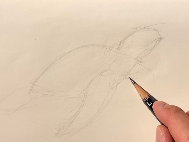 한 번에 정확하게 그린다는 생각보다는 연필선을 여러 번 왔다 갔다 하면서 전체적인 윤곽과 형태를 잡아주는 게 좋습니다.